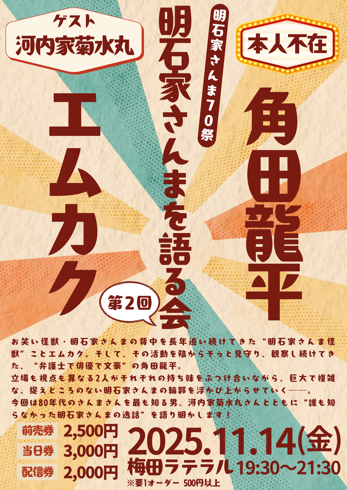【明石家さんま70祭】 エムカク×角田龍平「明石家さんまを語る会」