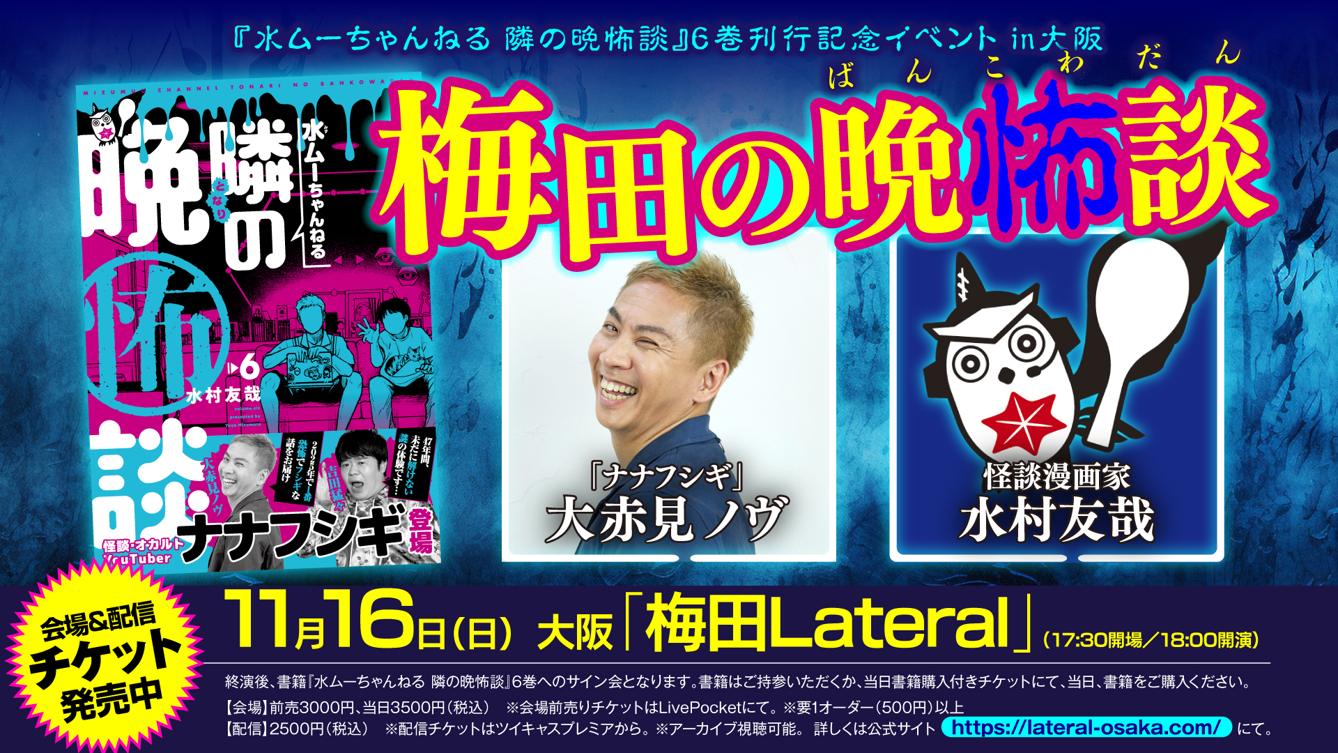 【出演】 水村友哉(漫画家、『水ムーちゃんねる 隣の晩怖談』著者) 大赤見ノヴ(ナナフシギ)